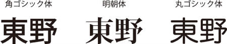 ■記入項目(名前など)に用いる事の出来る書体は、下記の3書体となります。