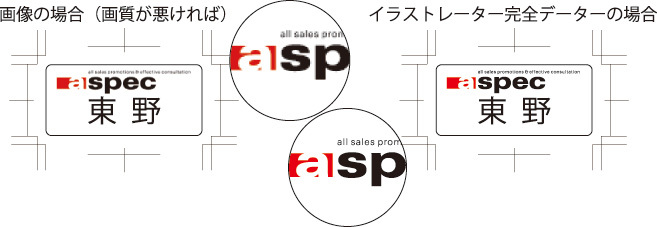 また、ロゴマーク等は画像ではなくアウトライン化したイラストレーターデーターをお勧めいたします。